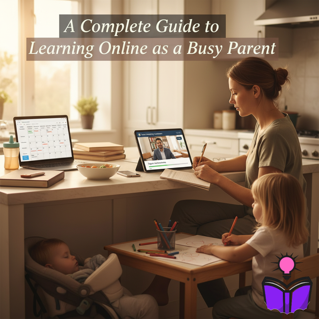 online learning for parents, study tips for busy parents, how to learn online with kids, adult education tips, work-life balance learning, online education guide, productivity for parents, lifelong learning